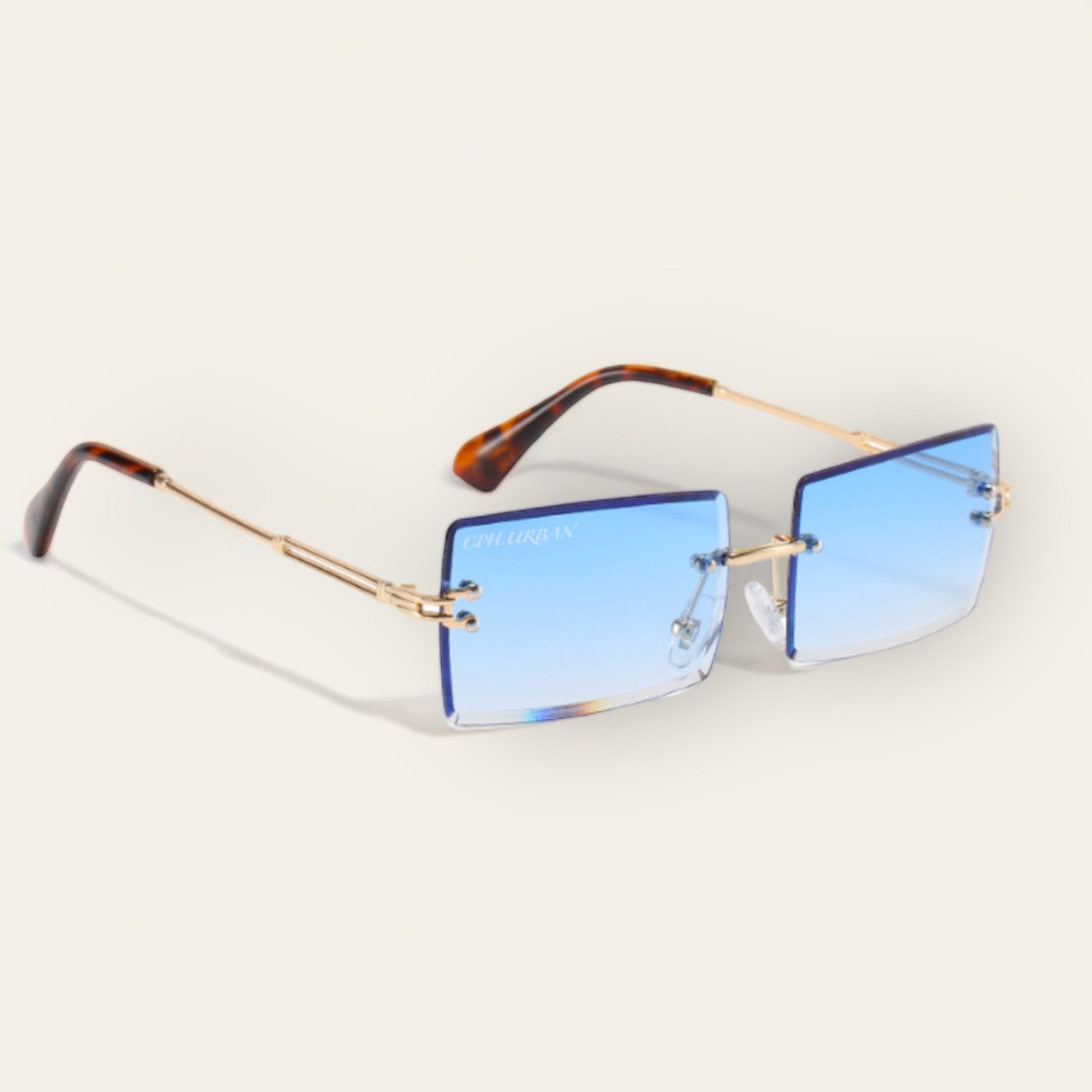 Med deres fortryllende blå glas og gyldne stel bringer disse solbriller minderne om eksotiske ferier og livlige byoplevelser til live. Deres unikke look tilføjer et strejf af karakter til ethvert outfit, uanset om det er til en afslappende dag på stranden eller en aften med vennerne.